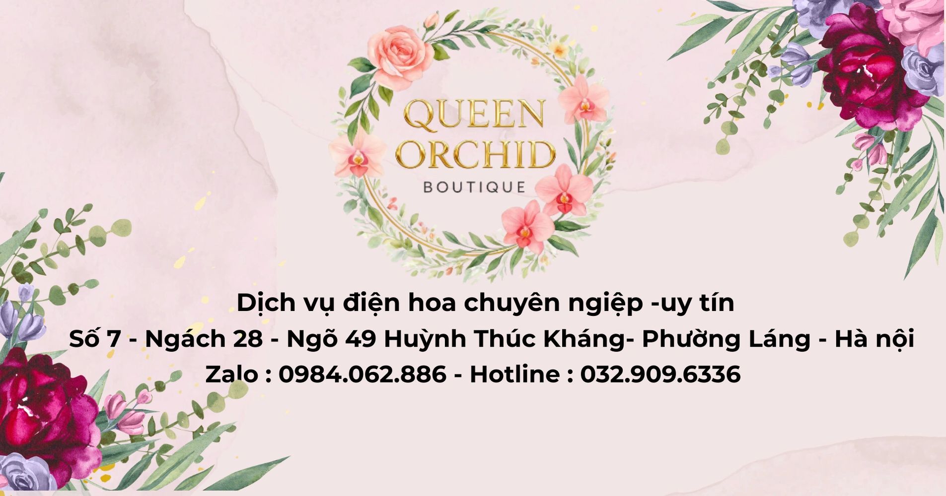 Queen Orchid cũng cung cấp dịch vụ thiết kế hoa cho các sự kiện đặc biệt và quà tặng. Hãy để chúng tôi tạo ra những bó hoa độc đáo cho những khoảnh khắc đáng nhớ của bạn.